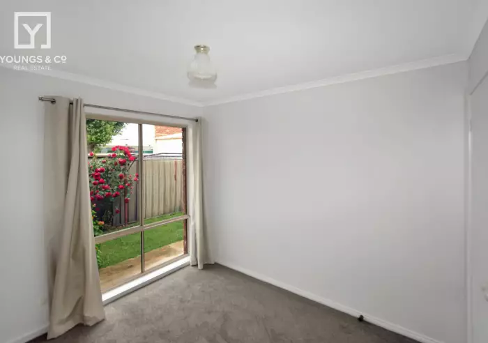 This spacious two-bedroom unit offers comfortable open-plan living with split-system heating and cooling. Both bedrooms feature built-in robes, and there’s a separate bathroom and laundry for added convenience. Ideally located within easy reach of GV Health and the Shepparton CBD, this low-maintenance property with small rear yard with single garage and space for another vehicle.